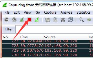 1.在当前抓包的过程中,需要先停止正在抓包的wireshark工具。点击”停止“按钮