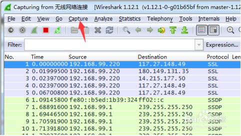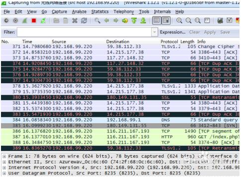 6.这样在开始抓包的数据包的,可以在列表中显示的为ip的设置的数据包内容。