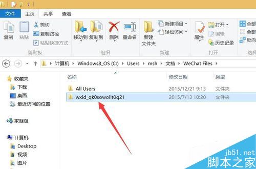 打开“我的电脑”,将所复制的地址粘贴到地址栏中并按回车,即可显示如图所示的文件夹,双击除“WeiXin”文件夹之外的另外一个文件夹进入。