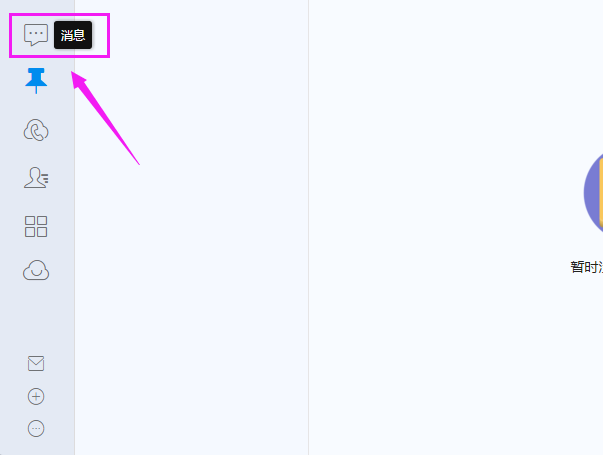 4、点击【消息】,如图。把鼠标移动到左边的图标就可以看见文字。