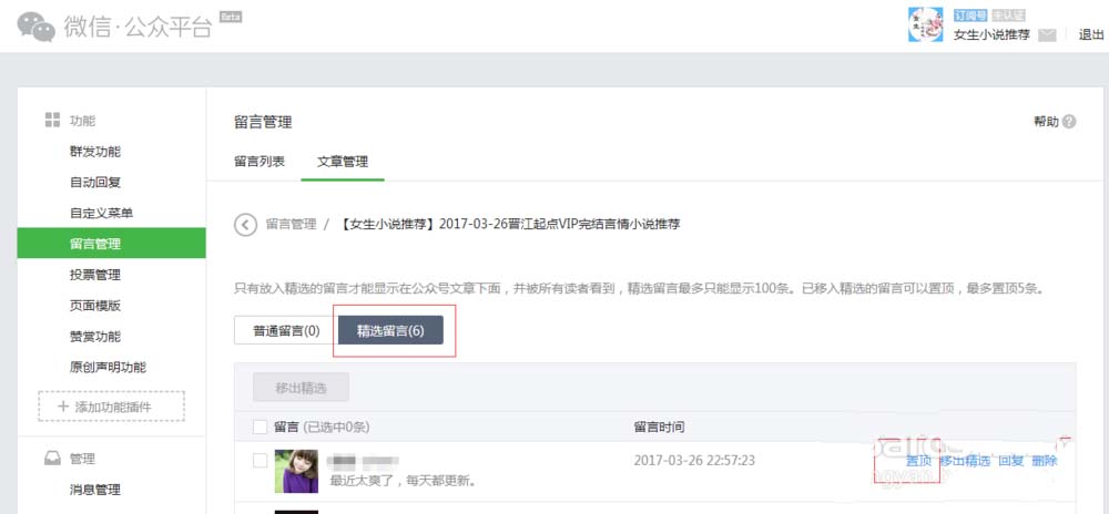 微信公众号置顶精选留言有哪些要求?