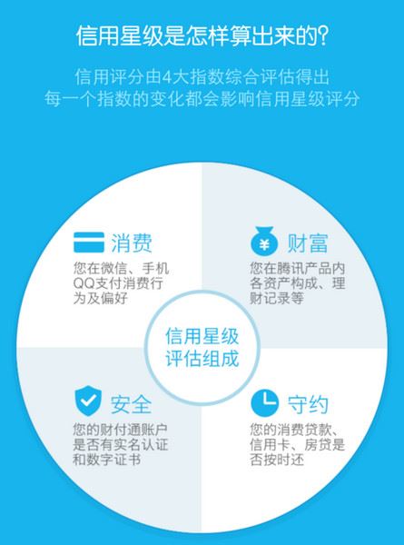 信用星级评估组成——消费、财富、安全、守约