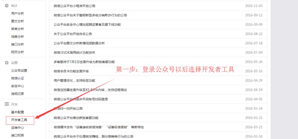 1、首先呢,当然是我们要登录自己的公众号,找到开发者工具
