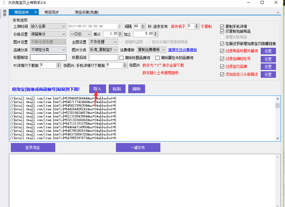 3、添加我们需要上传的产品链接,这里我随便找了些产品