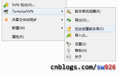 新建一个文件夹,名字不要用中文,进入文件夹,点击右键TortoiseSVN - 在此创建版本库。