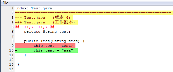 在检出的分支中点击右键 - TortoiseSVN - 应用补丁,补丁效果如下