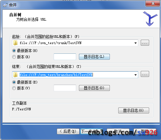 结束的必须大于起始的的版本号,我想把b1分支的版本5合并到主干,就按下图填写