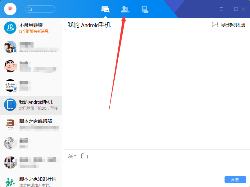 首先登录腾讯Tim,进入主界面,选择箭头所指处,点击