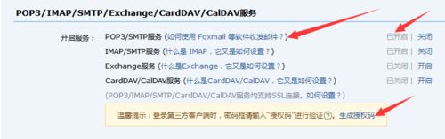 确认开启POP3/SMTP服务
