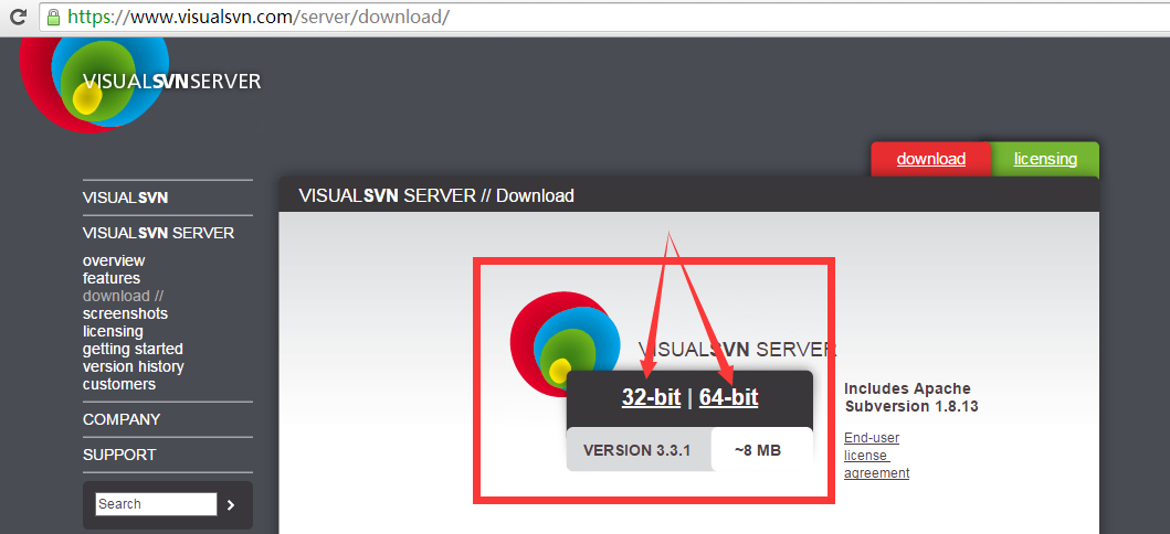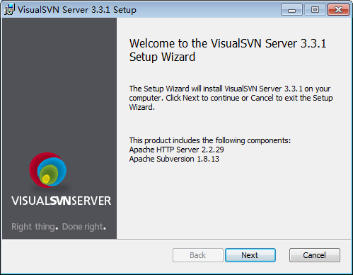 VisualSVN Server下载地址:https://www.visualsvn.com/server/download/