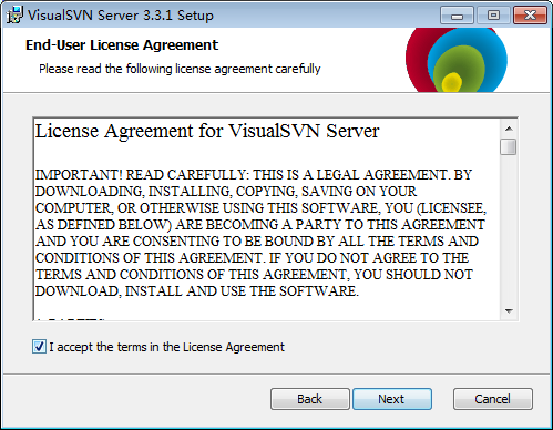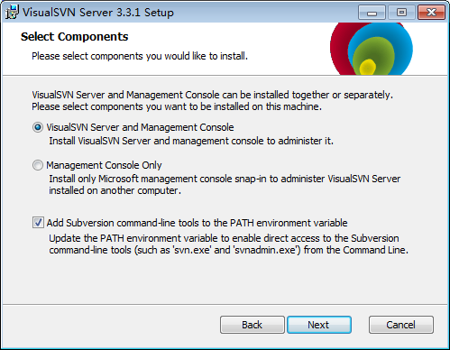 默认选择即可,第一项是安装VisualSVN Server以及控制台。