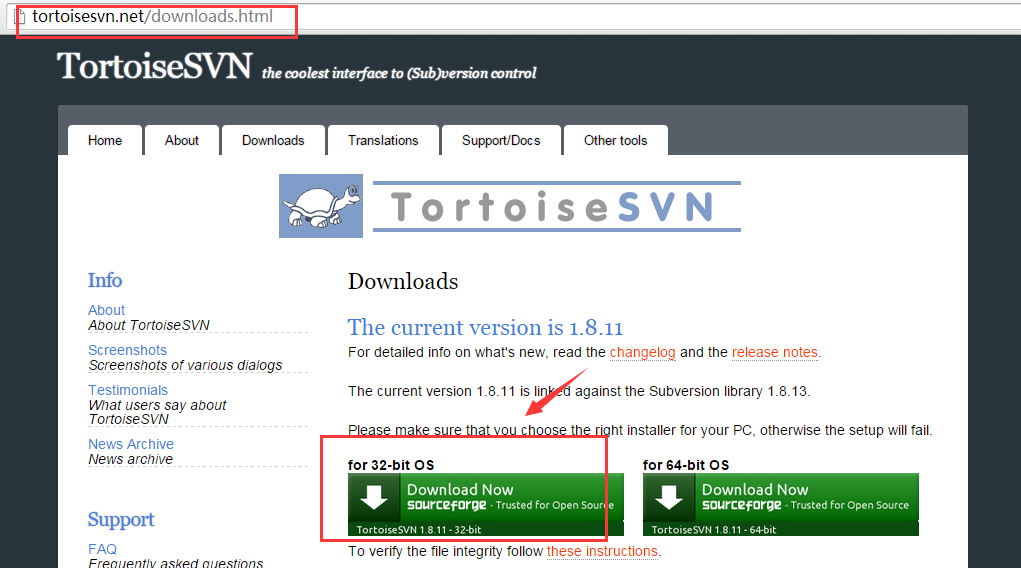 ToroiseSVN下载地址:http://tortoisesvn.net/downloads.html
