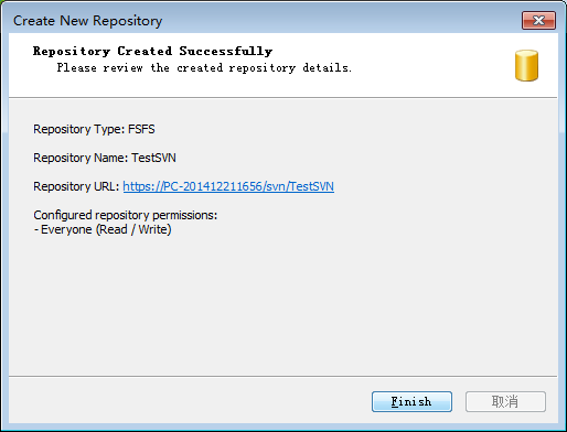 创建完成资源库,记录资源库的URL地址,稍后会使用改地址连接资源库。