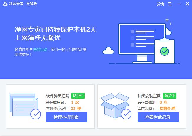 净网专家是一款帮你拦截不需要的软件弹窗,提醒你阻止捆绑软件安装的工具。