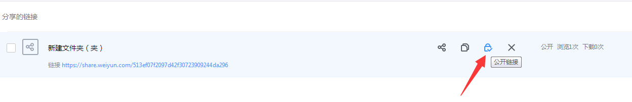 (2)接着它会帮我们打开腾讯微云的网页版,在这里找到我们刚才分享的文件,接着点击它右边的“公开链接”按钮,如下图所示: