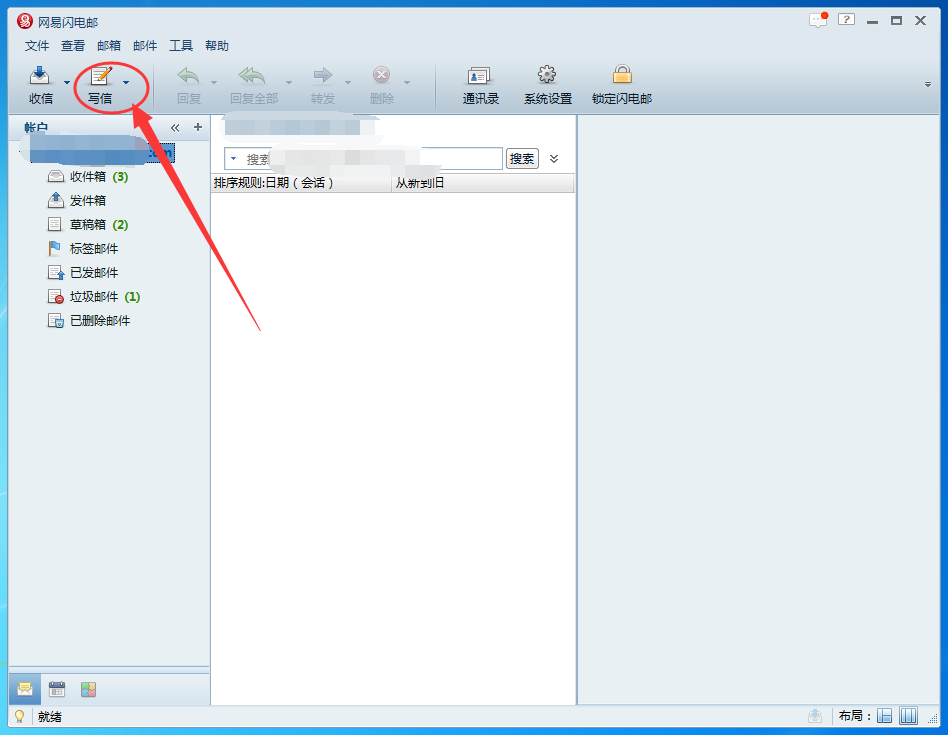 1、打开网易闪电邮并登陆自己的网易邮箱账号,登陆完毕后在其界面的左上方点击“写信”来到写信界面;