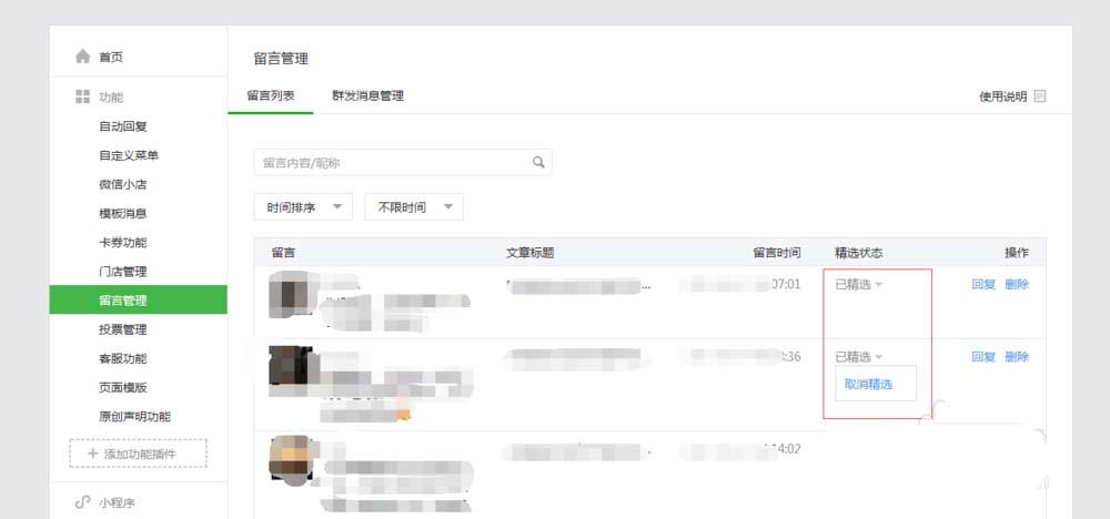 以上就是微信公众号管理粉丝留言的教程,希望大家喜欢,请继续关注脚本之家。