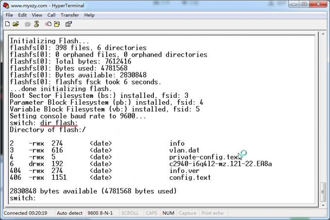 4、输入命令switch: dir flash: 回车,查看交换机配置文件。(注意flash后面是有冒号的)