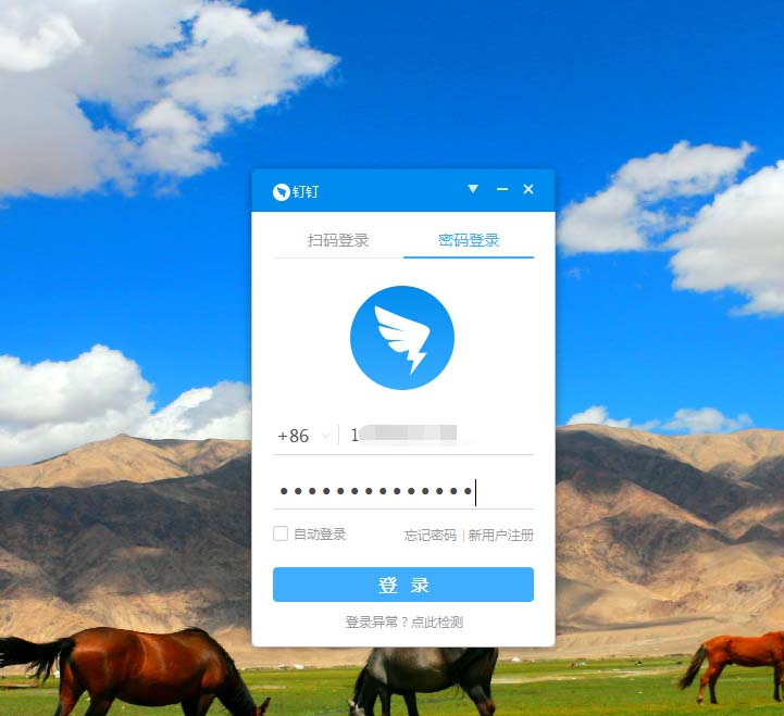 1、打开钉钉电脑版,输入账号密码点击登录。