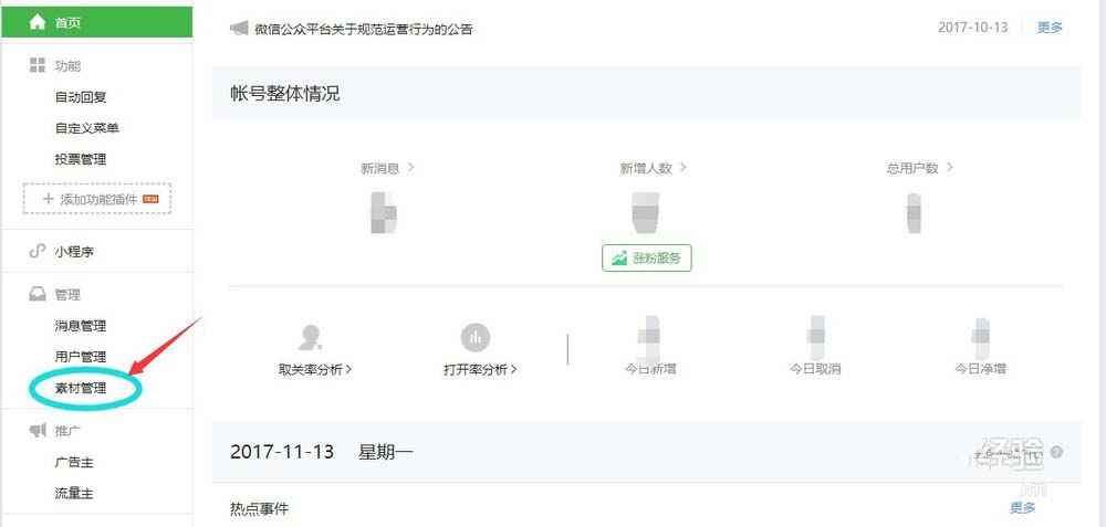 1、首先登陆微信公众号后台,进入设置-素材管理