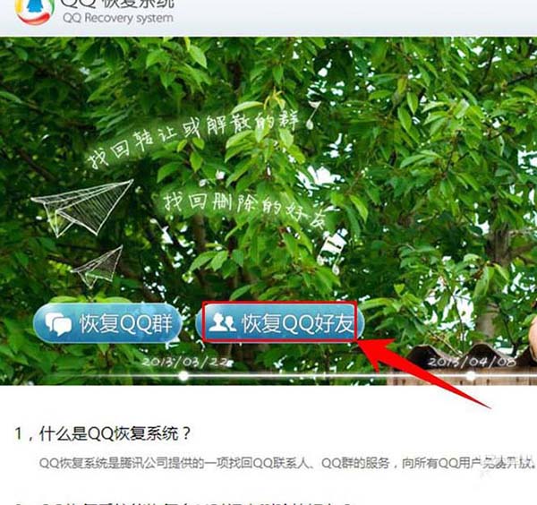 2、进入QQ恢复官网后,在页面上找到【恢复QQ好友】选项,并点击它。