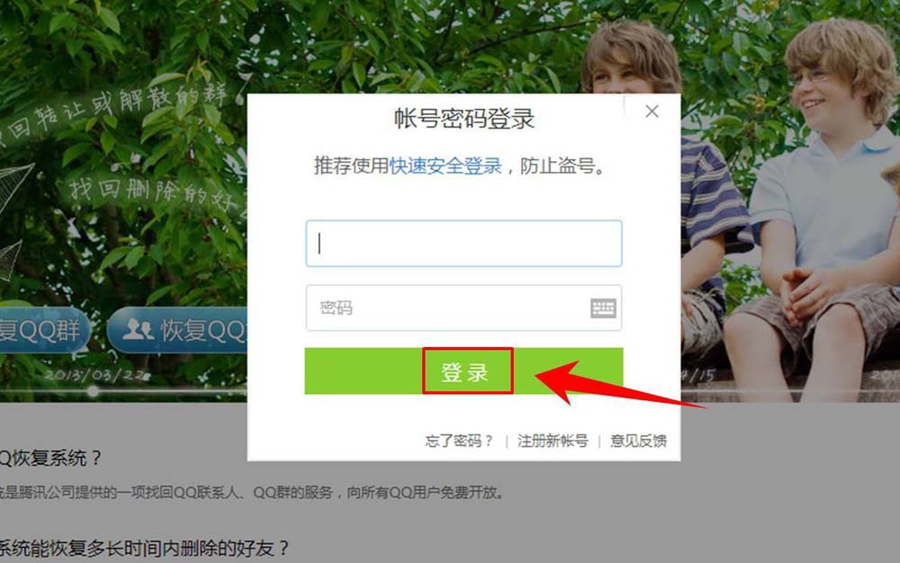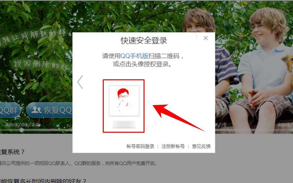 3、要恢复黑名单好友需要先将相应的QQ号在QQ恢复官网上进行登录,登录有两种方式,一种是在QQ处于登录状态的话,可以点击快速登录。