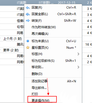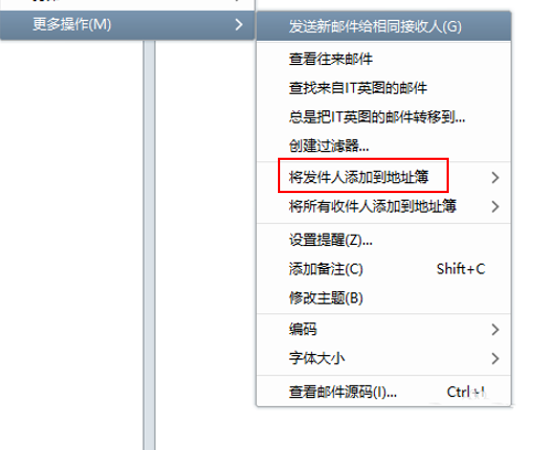 4、在更多操作弹出窗口,选择将发件人添加到地址簿