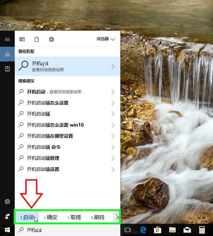 1、电脑系统设置TLM开机启动选项。用户在"在这里输入你要搜索的内容 (按钮)"上左键单击输入:开机启动。