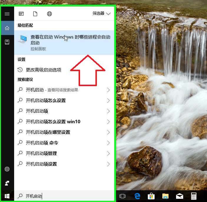 2、用户在"查看在启动 Windows 时哪些进程会自动启动, 控制面板 (项)"上左键单击(在"Cortana (小娜)"中)。