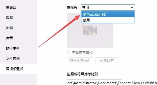 5、点击摄像头下拉菜单,在弹出菜单中选择笔记本电脑的摄像头