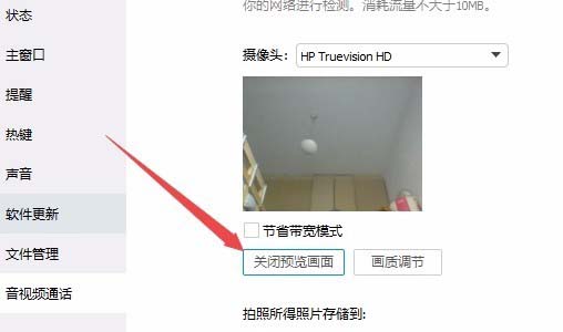 6、这时点击预览窗口下面的“打开预览画面”按钮,就可以在上面的预览窗口中看到摄像头的视频界面了。这样就可以正常使用摄像头与好友聊天了。