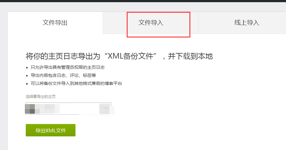 7、将备份到本地的博客XML文件导入到LOFTER,支持LOFTER,点点网,博客大巴博客平台导出的备份文件。