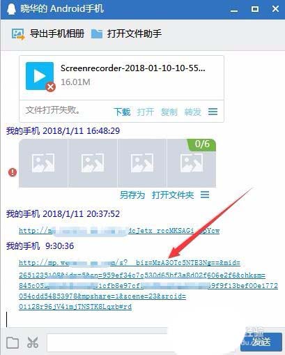 5、这时在电脑上就会弹出我的手机对话框,点击收到的网址即可。