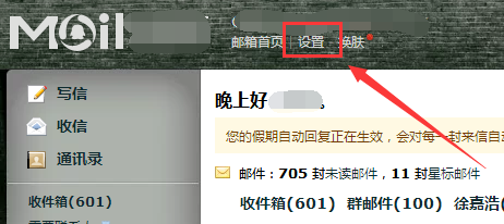 1、首先成功登录进入邮箱,在页面上方可以找到“设置”按钮,点击打开设置界面,进行简历功能开通。