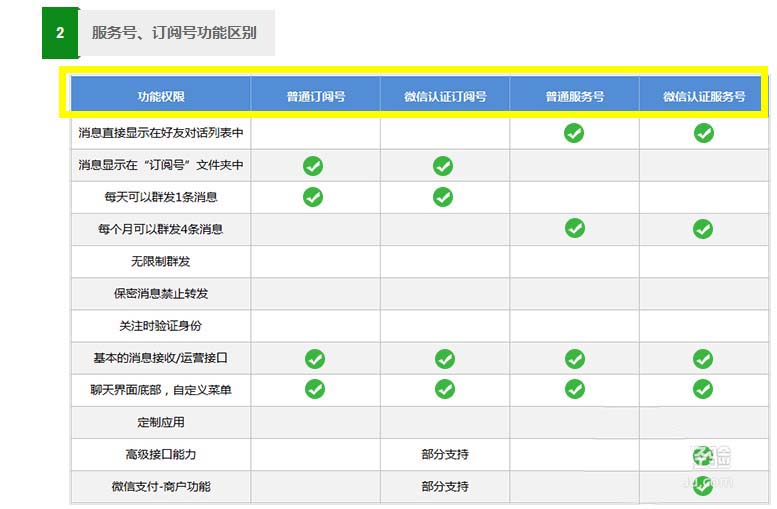 2、如果想用公众号获得更多的功能,例如开通微信支付,建议可以选择服务号;