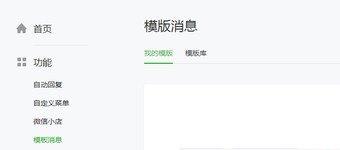 5、扫码授权进入之后,我们点击模板消息功能,如下图所示。