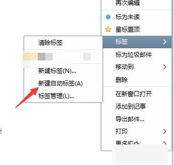 4、点击标签显示标签列表,找到新建自动标签,如图