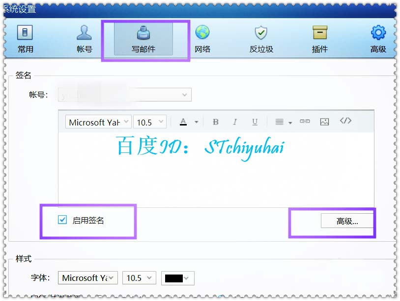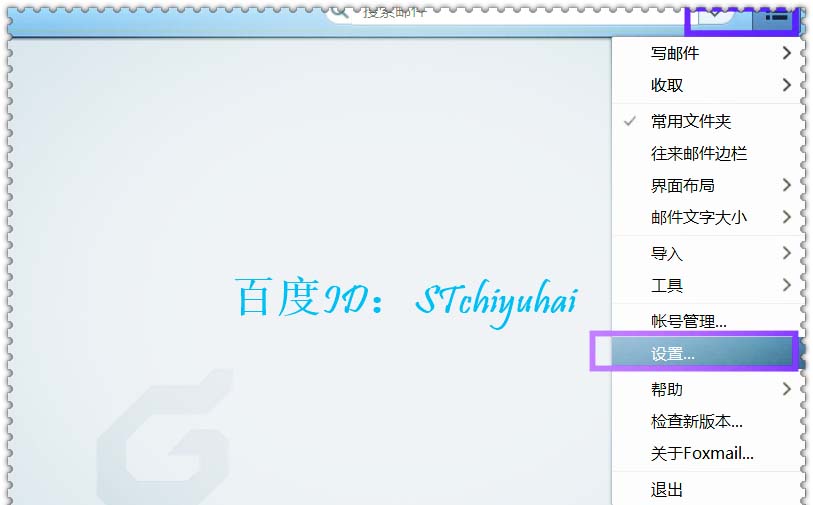 4、打开Foxmail 7.2 在右上角点击更多,在弹出的操作界面中找到设置,进入设置界面,切换至写邮件,可以看到这个界面底部有启用签名,将其打钩,然后点击高级。
