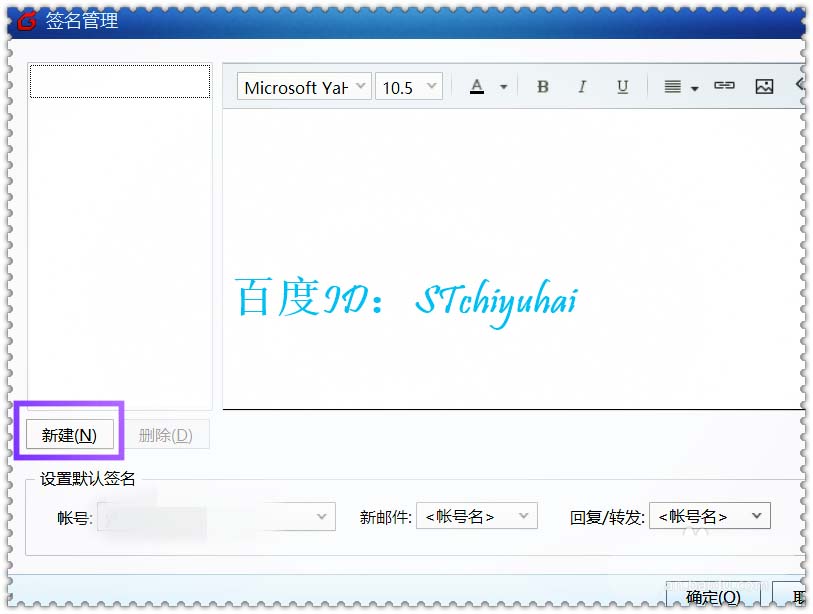 5、在高级界面中左侧,点击新建,建立一个新的签名档。