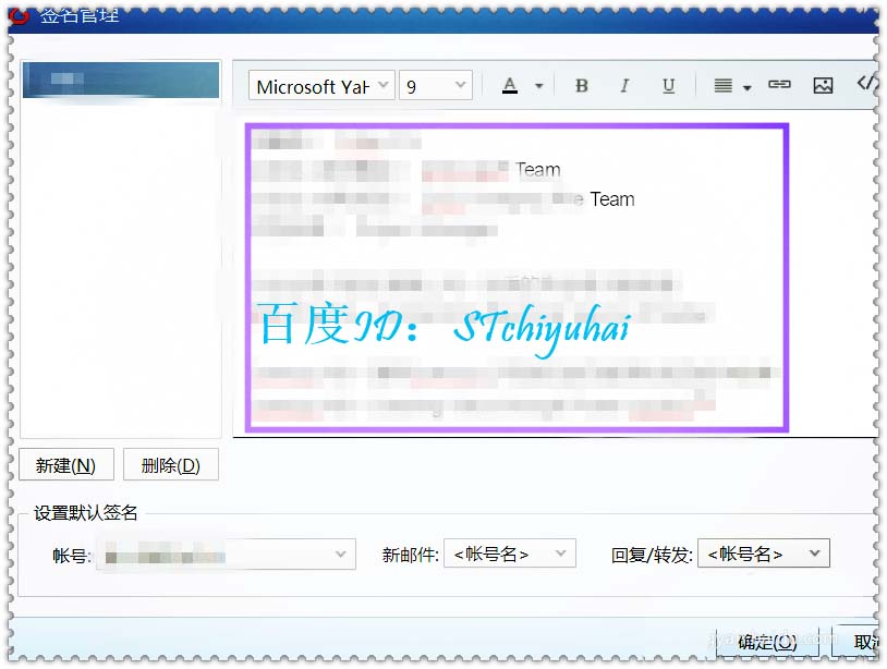 6、在编辑界面中黏贴刚才复制过来的签名档,然后保存。同时要将底部选择这个签名档,让其在发邮件或者转发邮件的时候添加上,完成签名档转移。