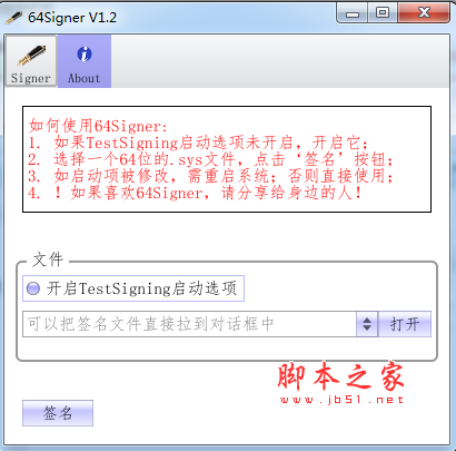如何用64signer给驱动文件数字签名?自从Vista64位Windows开始,操作系统的驱动内核程序都要进行数字签名,这是微软的策略,为的是保证系统的安全稳定,签名都要申请,验证,批准,会很麻烦,这对开发驱动内核程序的开发人员来说,是非常痛苦麻烦的事。为了解决这个问题,微软有自已的临时的测试证书签名工具,但是是控制台程序,使用命令方式,也很麻烦,下面介绍一个64signer数字签名工具,可以一键完成数字签名。需要的朋友跟着小编一起去看看具体的操作步骤吧!