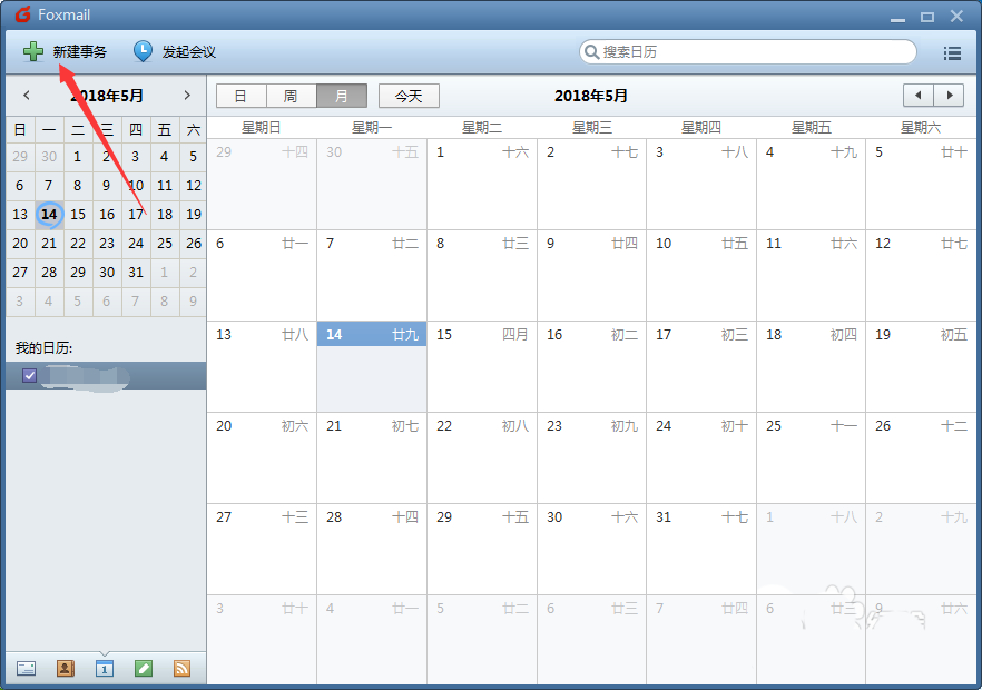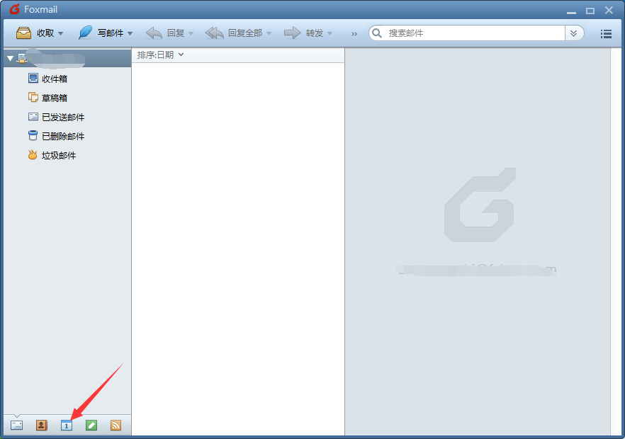 1、Foxmail邮件界面上找到日历图标,图中指出的