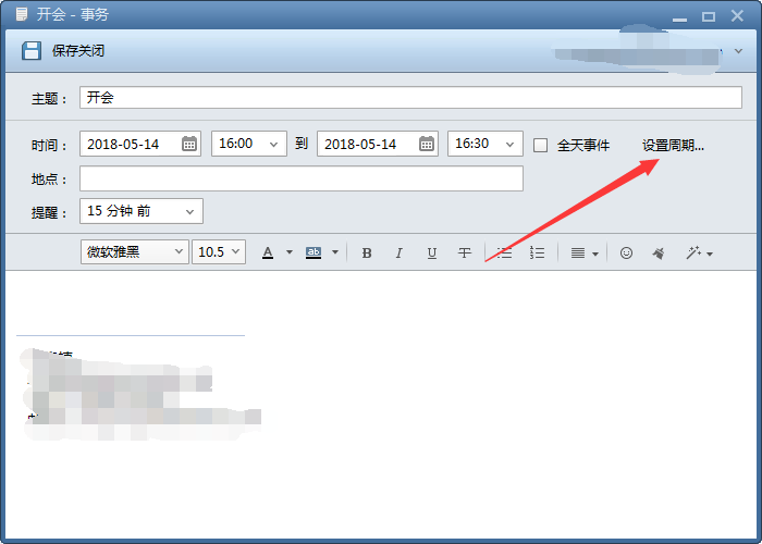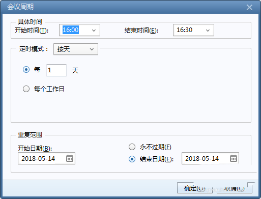 5、设置完主题和时间,点击设置周期,弹出会议周期设置窗口,如图
