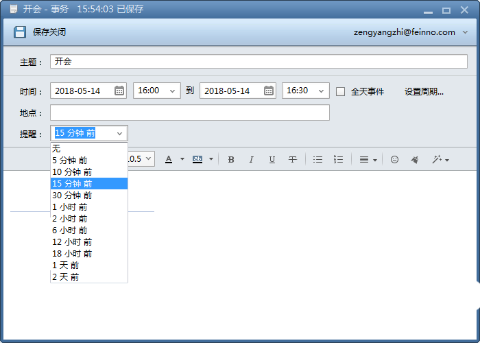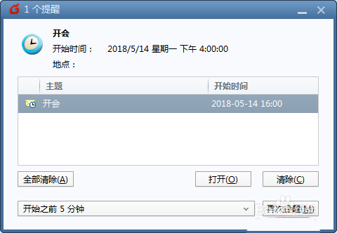 6、点击提醒旁的下拉按下选择提醒时间,如图