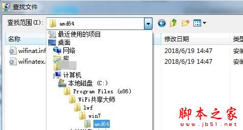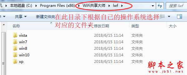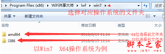 目录是 WiFi共享大师目录下的 lwf 目录,根据操作系统选择对应版本,这里以Win7 64位为例