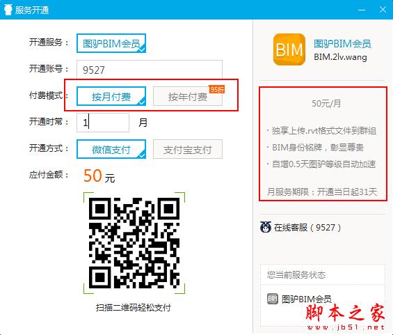 付费模式分为按月付费(50元/月)和按年付费(570元/月)