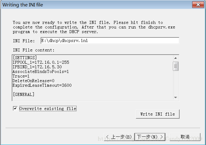 填写 INI 文件的保存路径, 如果之前配置过,勾选 Overwrite existing file 并点击 Write INI file 保存。然后点击下一步。