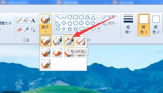 3、点击书法笔刷2号。