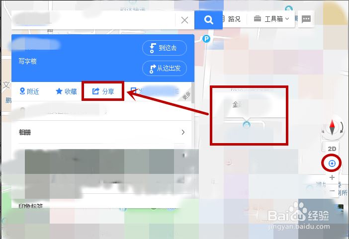 在地图上找到我们点击要分享的地址,然后在地图左上方点击【分享】选项