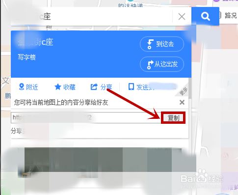 2、这时在【分享】的下方就会出现一个地图的网址,我们点击后面的【复制】选项
